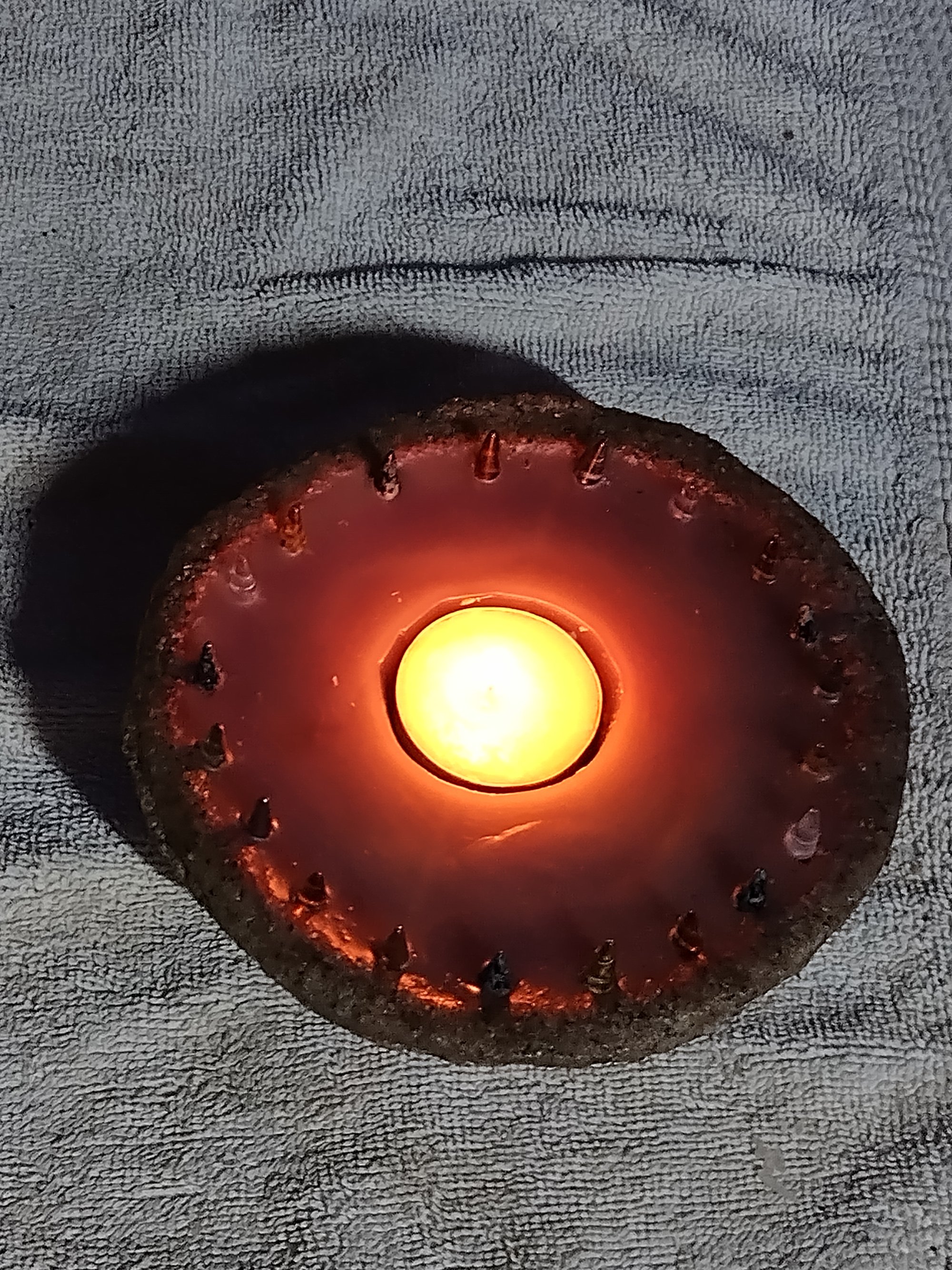 The central tealight is cradled in a geode-like form, surrounded by a circle of clarity and calm.